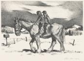 Exhibition History"36 Regionalist prints from the KIA," Dennos Museum Center (Sept. 8 - Nov. 24, 1996), Ella Sharp Museum, Jackson, MI (May 17 - July 13, 1997), Midland Center for the Arts (Aug. 2 - Sept. 21, 1997).Label TextSample first turned to art during a long recovery from tuberculosis and did not decide to make it his career until he was nearly thirty. His work was accepted from the beginning. His popular success came in part from an attitude that combined a sometimes sentimental fondness for his American subject matter with an interest in realist description. Sample’s art is primarily about people, what they do and the place in which they live. He rounded, stylized figures have something in common with Grant Wood and Doris Lee, but his way of setting him images against a monumental landscape is his own. In Rural Delivery, the major focus is the elongated, swayback horse. This particular image was used in so much of his work that it has been called the “Paul Sample Horse.”