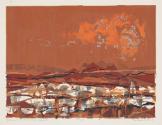 Label Textfrom KIA Traveling Exhibition text: McConnell uses a clever play-on-words in the title for this landscape. Serigraph, or silkscreen printing, is done from stencils stretched on silk over a simple wooden frame. A new stencil is required for each color, and the register is off enough here so each printing can be counted.