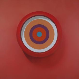 Exhibition HistoryRound and Round, Ethel Denton Groos Gallery, November 4, 2017 - March 4, 2018Label TextDonald Willett was a dedicated abstractionist who, like many of his fellow artists, investigated the properties of paint and experimented with various painting styles. A 1957 graduate of the Cranbrook Academy of Art, a faculty member, and painting department chair from 1964 to 1968, Willett was presumably well aware of the various modes of contemporary painting in the 1950s and 1960s. Certainly, Red #1, 1968, crosses the boundaries of multiple mid-century explorations—geometric abstraction, hard-edge painting, op art, pop art, and postpainterly abstraction—in a skillful composition that lures viewers through layers of warm colors into the painting’s cool blue center. The geometry of concentric circles is daunting technical territory for many painters. Willett’s handling of the challenge is exemplary. He further illustrated his skill by creating light and shadows atop colors that simultaneously defy logic to convey a strong energy and tension between the outer red circle and the vibrant red square background. Willett’s composition recalls the innovative “Target” paintings by Jasper Johns and Kenneth Noland from the mid-1950s into the 1960s. Both Johns and Noland challenged traditional notions of painting by conflating abstraction and representational imagery in minimalist compositions that visually pushed or extended one’s perception of the picture plane. Like his counterparts, Willett investigates the spatial relationship between layers of circles and the overall expanse of the canvas. Unlike Johns and Noland, Willett embellishes his surface with light and shadows, unusual colors, dimensionality, and realism to reference the “target or bulls-eye” as both an object, and perhaps, a vessel of meaning. Little is known about Willett’s personal biography. His work is found in only a few museum collections. Thus, the KIA is fortunate to have Red # 1, 1968. The work employs a skillful composition of circles, vibrant coloring, and a seemingly ordinary subject, thereby challenging viewers’ visual perceptions. [Collection Highlight]