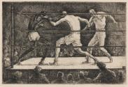 Exhibition History"At Work and Play," KIA Long Gallery (Apr. 1 - July 22, 2005).Label TextBorn in Utah as a grandson of Brigham Young, Mahonri Young’s early life was shaped by his family’s participation in Mormonism, and his later career as an artist was also bolstered by the many commissions he received from the LDS Church. Nonetheless, today he may be best known for his paintings, prints, and sculptures of boxers, a subject that he first explored while studying in Paris in 1901-5. While other American chroniclers of the boxing ring like Thomas Eakins, George Bellows, and George Luks (the latter two of whom were, like Young, students of Robert Henri at the Art Students League in New York City) focused on the pageantry, spectacle, or violence of prizefights, Young seems instead to concentrate on the rhythmic, dance-like interactions between pugilists. Muscled but lanky, his fighters hurl themselves to and fro with a coordinated intensity. Though he eventually established notable friendships with famous fighters , including World Heavyweight Champion Joe Louis, Young’s works typically focused on everyday people, and it is therefore unsurprising that most of his boxers are not famous champions but generic figures. Consequently, the subjects of these works are less particular fights, fighters, or venues (like Bellows’ depictions of world championship bouts and crowded and intense underground matches) so much as the physicality and beauty of the sport itself.