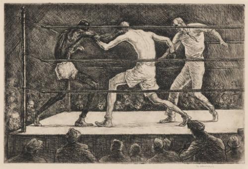 While other American chroniclers of the boxing ring like Thomas Eakins, George Bellows, and George Luks (the latter two of whom were, like Young, students of Robert Henri at the Art Students League in New York City) focused on the pageantry, spectacle, or violence of prizefights, Young seems instead to concentrate on the rhythmic, dance-like interactions between pugilists. Muscled but lanky, his fighters hurl themselves to and fro with a coordinated intensity. Though he eventually established notable friendships with famous fighters , including World Heavyweight Champion Joe Louis, Young’s works typically focused on everyday people, and it is therefore unsurprising that most of his boxers are not famous champions but generic figures. Consequently, the subjects of these works are less particular fights, fighters, or venues (like Bellows’ depictions of world championship bouts and crowded and intense underground matches) so much as the physicality and beauty of the sport itself.There are no works to discover for this record.