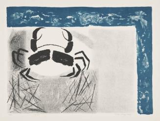 Label TextFlory has used two lithographic stones, one for each color to print his impression of a crab at seaside. The blue was painted on one stone with tusche, a lithographer's ink. Tusche was used to paint the crab with a litho crayon for the claw tracks and the sand background.There are no works to discover for this record.