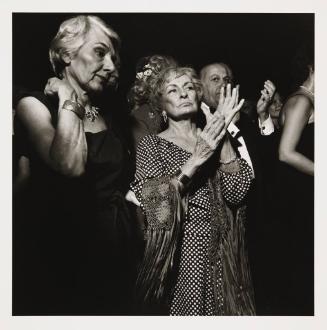 Exhibition History"Master Photographs from the Permanent Collection," KIA (Sept. 7 - Oct. 24, 1993). "The Woman as Subject: Selections from the Permanent Collection," KIA Long Gallery (June 13 - Sept. 8, 2003). "Photo Affinities," Art Center of Battle Creek (Jan. 6 - Mar. 4, 2003). "Framing Moments: Photography from KIA's Permanent Collection," KIA (Feb. 6 - May 16, 2021) Label TextLaurence Fink captured a truly noteworthy moment of unguarded expression by three people at a gala New York City event. While both women appear reflective in completely different ways, the one in the center is applauding, as is the man to the right. His attention seems to be riveted on the woman at the left whose demeanor is much more subdued. Fink was in the middle of the project for which he is best known. Called Social Graces, it is a series of photographs that compares people at glitzy social gatherings such as this with working-class individuals in rural Pennsylvania attending events such as birthday parties and graduations. Social Graces was the subject of an exhibition at the Museum of Modern Art, New York, in 1979. In 1984, Fink published eighty of the images as a book. [Framing Moments Exhibition, 2021]