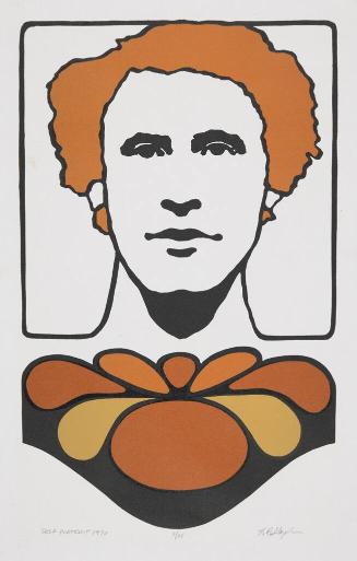 Label Textfrom KIA Traveling Exhibition text: Slezak is a young American artist using the color woodcut medium in a very decorative way. This self portrait uses elements that began with Art Nouveau at the end of the 19th century and eventually influenced the contemporary designer Peter Max.There are no works to discover for this record.