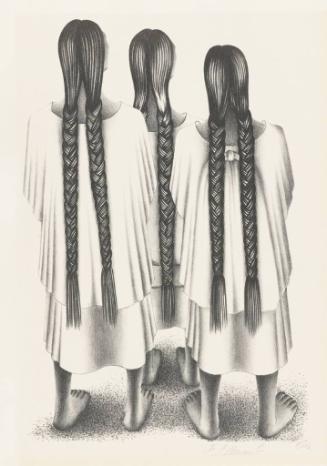 "Passion on Paper: Masterly Prints from the KIA Collection," March 17 - July 15, 2018, Groos GalleryLabel Text"Dosamantes was an influential educator and artist-activist who hoped to promote social changes in Mexico through art. The indigenous people of Mexico served as his inspiration and he worked tirelessly to promote their causes in an attempt to improve the quality of their lives. His service as an emissary on cultural missions took him to many states including Oaxaca and the Yucatan where he worked among the Maya Indians in 1941. In Mayan Trio, he directed his sharp-edged lithographic style to celebrate the distinctive braids and dress of the Yalaltecan women. The popularity of the print resulted in several editions. It was published under different titles including a 1946 edition by Associated American Artists, New York, as Women of Oaxaca (written by Nancy Sojka for Passion on Paper: Masterly Prints in the KIA Collection, 2018)
