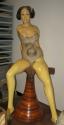 Label TextGallo is a contemporary sculptor who uses modern materials in a classic art form, the depiction of the female figure. He works in polyester resin, reinforced with fiberglass. He has developed his own techniques for casting and finishing this strong, durable material. The figure is sculpted first in clay, then cast in translucent plastic. Gallo then burns and etches in the areas he wishes to color brown. The resulting figures are both lifelike and surreal with a highly-polished surface similar to that of marble.