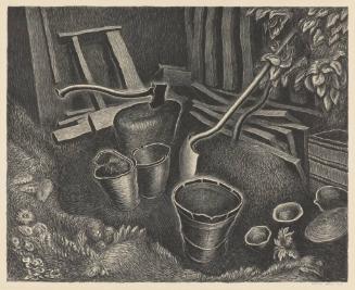 "Passion on Paper: Masterly Prints from the KIA Collection," March 17 - July 17, 2018, Groos Gallery.Label Text"Gag was a prolific printmaker represented by leading New York galleries. She was a legendary illustrator of children’s books and is regarded as a pioneer in the development of the picture book format. Dense, dark inking and vivid animation characterize her style. She focused on portraying innocuous, everyday objects such as the pails, shovels, and other implements of this little landscape but with such vitality and spirit that viewers could almost imagine them being able to move on their own. Her ability to inject a sense of unknown possibilities, to tug at the hearts and minds of her viewers, epitomizes the appeal and passion central to all her imagery (written by Nancy Sojka for Passion on Paper: Masterly Prints from the KIA Collection, 2018)."