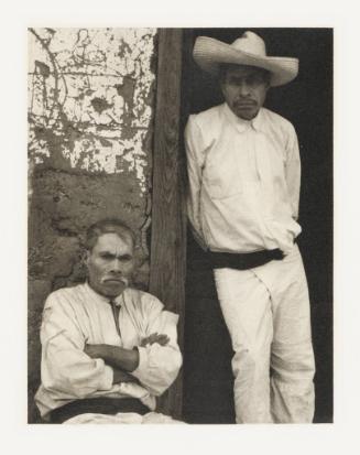 In the early 1930s Strand was asked by the left-wing Mexican government to contribute to a film, Redes, that focused on the lives of struggling fishermen on the Gulf of Mexico. He lived in the country from 1932-35, completing the photographs he later published as the Mexican Portfolio in 1932-33. These images demonstrate both Strand’s racialized perspective on Mexican culture and the growing radicalism of his politics. Much like the work of many of his peers in New Mexico, many of Strand’s photographs from the portfolio recreate a tourist’s perspective on a Hispanic culture as they focus on distinctive architectures and religious statuettes. However, his many images of everyday Mexicans, including the two men pictured here, demonstrate a sense of sympathy for them as fellow workers.There are no works to discover for this record.