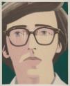 Alex Katz has spent much of his career creating modern, but realistic portraits, primarily of his family and close friends. Abstract as well as representational, he simplifies the sitter's forms and features, while enlarging and dramatically cropping the image. Despite the extreme close-up view, his figures seem isolated in their space and in their thoughts. In addition, Katz's use of broad, flat areas of pure color create portraits that resemble billboards and other forms of 20th-century advertising.
