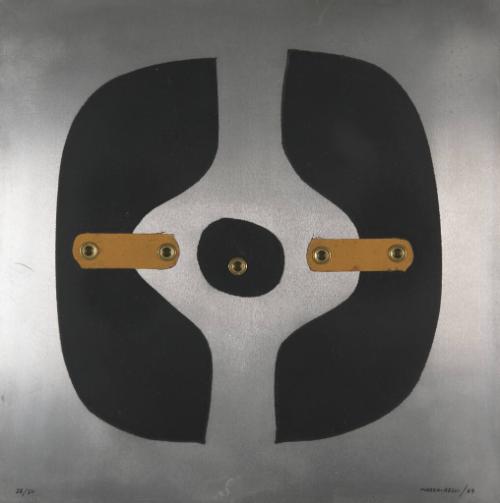 Mediumscreenprint on aluminum, polyvinyl, rivet
