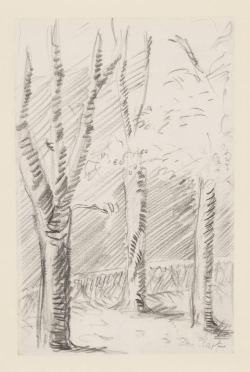 Label Textfrom Traveling Exhibition text: These two pages [along with 1963/4.592.11] from Karp's sketchbook shows how different mediums give different results. Note the sharp detail in the pen and ink drawing on the left while the study on the right done in crayon has a softer effect.There are no works to discover for this record.