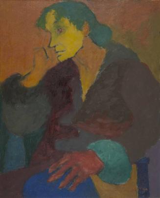 "Art, Music & Feminism in the 1950s," KIA Galleries 3 & 4 (January 21 - May 7, 2023).Label TextIn 1965, Victoria Littna moved to Kalamazoo from London with her husband, Francis, who was also an artist. Victoria became a force in the local and regional art community teaching at the Kalamazoo Institute of Arts and the Battle Creek Art Center. She was supportive of all local arts, including the visual arts, dance, music, and theater, and showed her own work extensively throughout the Midwest. When speaking about her art, Littna referred to herself as a “colorist.” Like Thoughtful Woman, many of Littna’s paintings are full of color and expressive brushstrokes. Her works demonstrate influences from European movements like that of the Fauves, who preferred scenes with strong emotional colors over realistic depictions. [Label for "Art, Music & Feminism in the 1950s”, 2023]