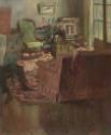 The Interior was one of many non-commissioned paintings purchased by The Upjohn Company, which manufactured prescription drugs in Kalamazoo. In an advertising campaign (1945-1949), the company used works of art to illustrate particular health messages and developments in the field of medicine. These ads appeared in such popular publications as The Saturday Evening Post, TIME, and LIFE magazines.