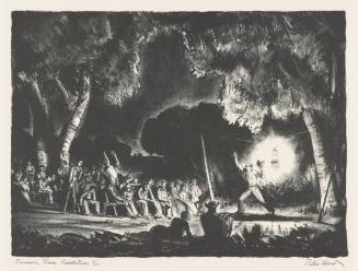 Exhibition History"36 Regionalist prints from the KIA," Dennos Museum Center (Sept. 8 - Nov. 24, 1996), Ella Sharp Museum, Jackson, MI (May 17 - July 13, 1997), Midland Center for the Arts (Aug. 2 - Sept. 21, 1997).Label TextBest known as a portraitist and painter of his native New Mexico landscape, Peter Hurd was also the brother-in-law of Andrew Wyeth, having married Henriette Wyeth in 1929. Most of the lithographs Hurd produced during his lifetime were created between 1934 and 1938. He later recalled turning to the medium during the Depression years to help “keep the bills paid.” Sermon from Revelations is based on a sketch Hurd made of an open-air revival meeting in a lantern-lit cottonwood grove near Roswell, New Mexico. Hurd wrote that the image was based on a scene he had witnessed of “an itinerant preacher from a Pentecostal sect calling down terror of the Apocalypse on all the unrepentant.” This is the second of two versions of this subject.