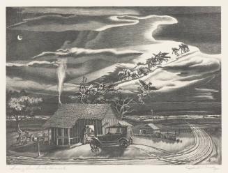 Exhibition History"36 Regionalist prints from the KIA," Dennos Museum Center (Sept. 8 - Nov. 24, 1996), Ella Sharp Museum, Jackson, MI (May 17 - July 13, 1997), Midland Center for the Arts (Aug. 2 - Sept. 21, 1997).Label TextBorn in Mississippi and resident in New Orleans for much of his life, McCrady devoted his life to recording and interpreting the subject matter of the South. In Swing Low, Sweet Chariot, McCrady interprets the old spiritual of the same name. The scene describes the death of a resident of a small sharecropper cabin. Mourning family members gather around the bed, seen through the open doorway, while the heavenly chariot descends over the cabin itself. An angel escorts the spirit of the departed up to the chariot, seen only by the dogs that stand as silent witnesses as lower left.