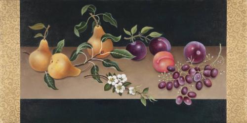 Pears, Plums, Grapes, and Blossoms