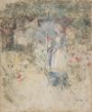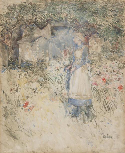 Label TextChilde Hassam worked as a draftsman and commercial illustrator before turning to fine art in the early 1880s. In 1886 he traveled to Paris, where he studied at the Académie Julian and was exposed to the increasingly popular Impressionist movement. When he returned to America three years later, he began depicting American subjects with the same pastel palette, broken brushstrokes, and focus on the play of light that the Impressionists employed, fulfilling a desire for art fashioned in the new European style among an increasingly cosmopolitan American elite. He quickly became known for his impressionistic depictions of Boston, New York, and the countryside of New England, often mimicking French Impressionists not only in terms of style but also via a focus on vignettes of everyday life in modern cities. However, unlike some of his counterparts in Europe, Hassam tended to avoid social commentary in favor of picturesque views of snowbound city streets and squares and sunny snapshots of everyday life in rural New England.