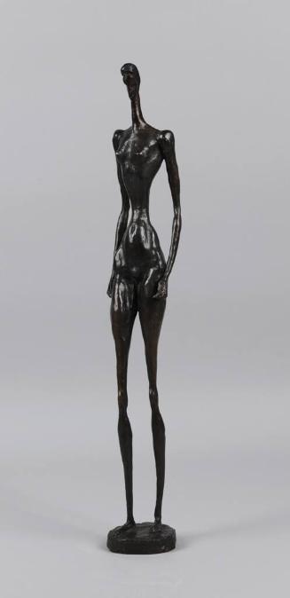 Label TextBy the 1950s, Doris Caesar had already cast bronze sculptures for nearly three decades. However, during the ʼ50s, she narrowed her focus and abandoned the male figure, portraiture, and details. Instead, she explored a single topic—the female form—more deeply and fully. Caesar’s forms are expressionistic in style, with elongated bodies, small heads, and masklike faces. In 1959, the Whitney Museum of American Art curated an exhibition entitled Four American Expressionists, which featured Caesar alongside three male counterparts. Curator and essayist John I. H. Baur wrote about Caesar’s sculptures for the catalog, saying, “They speak in spontaneous gestures, tempered by an odd self-consciousness, and evident awareness of their bodies and what these tell of a woman’s inner life. If the revelation is nearly painful in its intimacy, it is also a deeply compassionate expression of the essences of womanhood.”