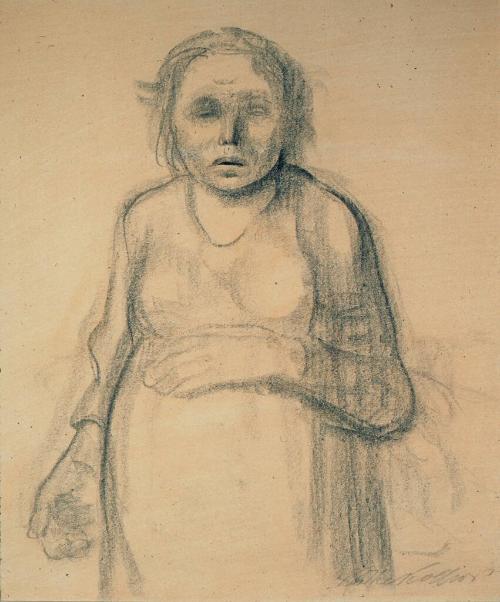Label TextThroughout her career, drawing remained Käthe Kollwitz’s essential means of expression. In her early sketches of working class women and their families, her observations are sensitively rendered to convey the emotional connection between artist and subject. By the time Kollwitz created The Widow, she had abandoned using actual models. Instead she created figures that embodied, rather than depicted, the deepest human responses to loss and suffering.