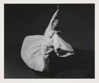 This image was not made at a performance of the live ballet; rather, the photograph was taken in one fo the studio spaces used by Morgan in New York City. It was Morgan's custom to attend repeated rehearsals and performances of the dances she planned to photograph, and watch for significant moments that she would later re-create in a studio setting. In collaboration with the dancers, most especially Graham herself, Morgan would discuss the choreography, music, and philosophy behind each ballet, then focus on a small group of movements that would represent the essence of the work as a whole. Morgan called these selected moments of action "instants of combustion."