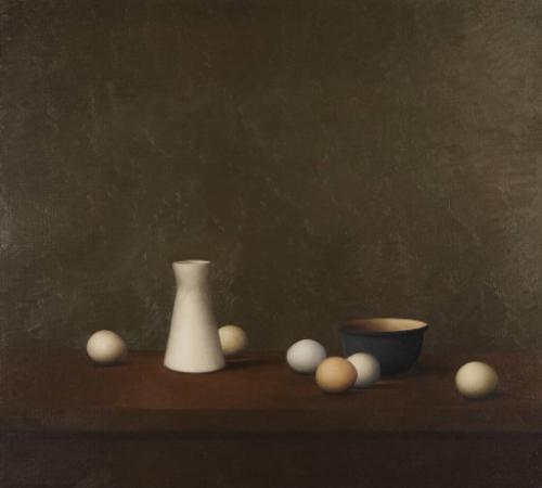 "Legendary Voices: Art for the Next Century," KIA (September 7 - February 18, 2025)Label TextBailey has been called a "Realist", yet with his beautifully rendered objects he creates an imaginary universe with extraordinary serenity and order, a very unreal, metaphysical place. His subtle palette of ochres and siennas filter out all violent strains of feeling and create a mysterious, poetic space. Bailey retains strict control of his pictorial space with the smallest margin of psychological or literary association.