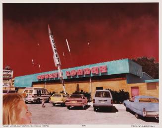 Label TextPatrick Nagatani’s artistic work was greatly influenced by a historic event that happened just days before his birth in his ancestral hometown—the nuclear bombing of Hiroshima. Many of Nagatani’s collages are filled with images that harken back to the atomic design era of the mid-1940s to 1960, like the rocket ship depicted here. His work also often shows military technologies influenced by what Nagatani would have regularly seen living in the American Southwest near various military testing sites.