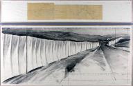 "Lasting Legacy: A Collection for Kalamazoo," Kalamazoo Institute of Arts, Kalamazoo, Michigan (Sep. 6, 2014 - Jan. 4, 2015).Label TextChristo and his wife/partner Jeanne-Claude collaborate to create temporary, large-scale and environmental works of art. Designed to disrupt one aspect of an existing environment, these installations force the viewer to perceive a space in a new way. After the artists conceptualize the work, preparatory studies and drawings like the one seen here for Running Fence are sold to raise money to finance the project. All installations are funded in this manner as Christo and Jeanne-Claude believe that accepting grants or donations would compromise their artistic freedom.