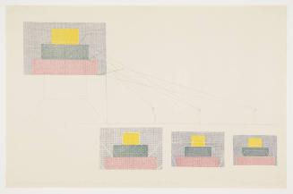 Label TextCreated in 2002, this detailed drawing illustrates the assembly of "Promenade," a mixed-media work at the KIA installed by the artist four years earlier, in 1998. Work on ceiling panels at the KIA in 2000 necessitated disassembly of the ropes. KIA staff members were able to rehang the ropes precisely as before, but requested a detailed drawing from the artist as a guide and precaution for the future.