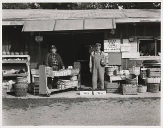 Label TextMany of Christopher Schneiter's works present the human faces of Michigan. In Max and Helen, we see a tribute to the strong agricultural base of the state's "fruit belt." While many of the Midwest's family farms are disappearing, Max and Helen's roadside fruit stand persists as a reminder of an agricultural past which, deliciously, still exists in this corner of Michigan.