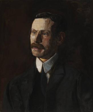 In the later part of his life, Eakins turned to portraiture, and brought to this genre the same absolute insistence on anatomical accuracy. His portraits employ none of the flattery, exaggeration, or visual trickery common in portraiture of the time, but instead embody a deeply personal, truthful representation of the subject. This work was a gift to its subject, Ernest Lee Parker, who was a curator at the Pennsylvania Academy of the Fine Arts, where Eakins was both a student and teacher. Although the portrait is imbued with a deep stillness, Parker's intelligence, honesty, and studiousness are readily apparent.