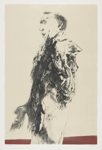 Label TextThe meaning of the title word, Disputation, is to argue a point passionately. The artist suggests the emotional connotations through the style of his mark-making and the pose of the figure. Breverman used short, quick strokes to describe his subject. These lines flicker and crackle, giving the figure a sense of intense energy. The artist thinks in terms of animated fragments rather than continuous contours. The face and expression of the figure is captured in a few quick lines. Much of the figure's intensity comes from the body, which is posed straight and erect with the hands open and outstretched.There are no works to discover for this record.