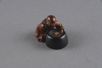 "Through the Years" KIA Galleries 2 & 5 (January 29 - April 30, 2021).Label TextSosui, of the “So” school favored by Japanese collectors, was one of the foremost netsuke carvers of the 20th century. He was known for using a combination of woods, as in this piece. A seated holy man (in boxwood) blows on a fire in a hibachi grill