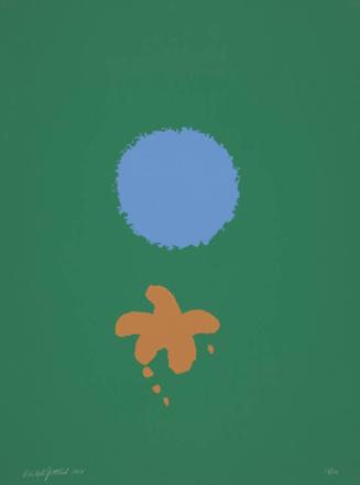 Adolph Gottlieb began making prints in the 1940s, but experimented with painting, sculpture, and stained glass for twenty years before returning to printmaking the year he made Blue Disc on Green Ground. In a series of “Bursts” he made numerous variations on these forms: a circular element above and an exploded form below.