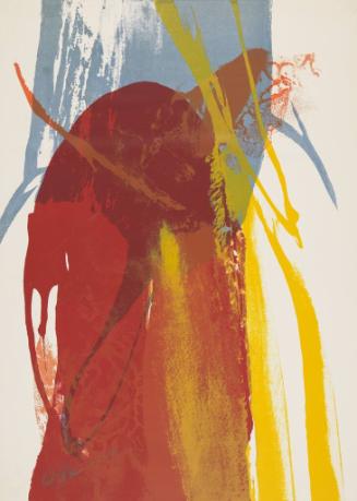 "Drawn to Abstraction," Bedford Gallery, Walnut Creek, CA (Sept 28-Dec 15, 2024).Label TextPaul Jenkins is known for creating sheets of transparent color through his process of pouring paint on canvas. Red Parrot achieves a similar effect via the print medium. His personal interest in mysticism and unorthodox application of paint are consistent with the Abstract Expressionist philosophy and aesthetic.