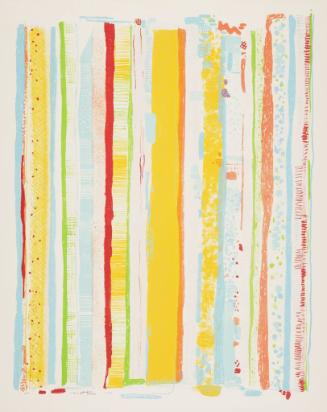 Label TextIn the 1960s, Chicago artist Robert Natkin began to reduce his compositions to series of exclusively vertical elements. The simplified structure allowed him to concentrate on surface texture and the vibrating effects of contrasting colors. This print, concerned with light’s role in the perception of color, is part of an on-going series of paintings and prints named for Apollo, the Greek god of the sun.