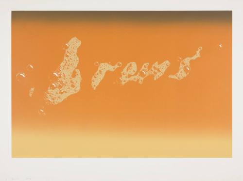 Label TextCalifornia-based Ed Ruscha made the screenprint Brews near the end of a two-year period during which he painted various “liquid word” images. In this print, the word becomes more than just an abstract signifier as the lettering appears to be traced in dripped beer foam.