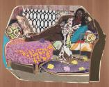 "EXPO Chicago 2023" Chicago, Navy Pier (April 11 - 14, 2023).Label TextIn You're Gonna Give Me the Love I Need, Mickalene Thomas presents the reclining figure of a woman, a familiar pose known as the Odalisque. Traditionally, a reclining nude woman portrayed by European male painters, symbolized women as sexually available, idealized, and submissive. In the hands of Thomas, however, the woman is clothed enticingly in a v-neck blouse, black skirt, and red peep-toe pumps. The model’s posture and facial expression communicate her commanding presence and undeniable style. Despite colorful surroundings, the palpable energy of the woman at center draws the viewer’s attention directly to her. Weaving in bits of cloth and adding a dash of glitter, Thomas incorporates the bold colors, patterns, and textures of Black culture, fashion and everyday life, further underscoring the woman’s dynamism and ownership of her own sexuality. Thomas’ work re-envisions the Odalisque as a Black woman with agency and power, repositioning the subject a woman demanding respect—and even reverence.