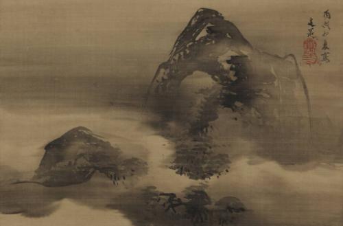 "Vistas: Visions of China, Japan, and Korea," KIA Joy Light Gallery of Asian Art (Oct. 20, 2021 - Feb. 6, 2022)Label TextTani Buncho (1763-1841) studied first with a master of the Kano school, stressing Chinese themes and techniques. He also came under the influence of Nanga (Literati Painting) as well as of Yamato-e (traditional Japanese painting). He founded a new school of painting called Nanboku goitsu, or the South and East school, and he introduced the use of Western perspective, a technique further refined by his most famous pupil, Watanabe Kazan.