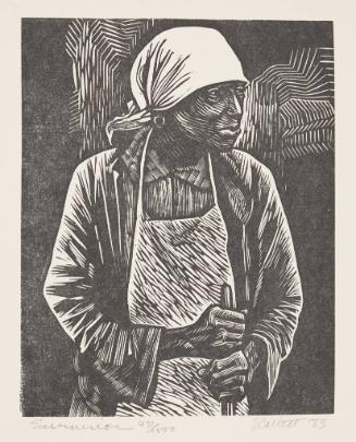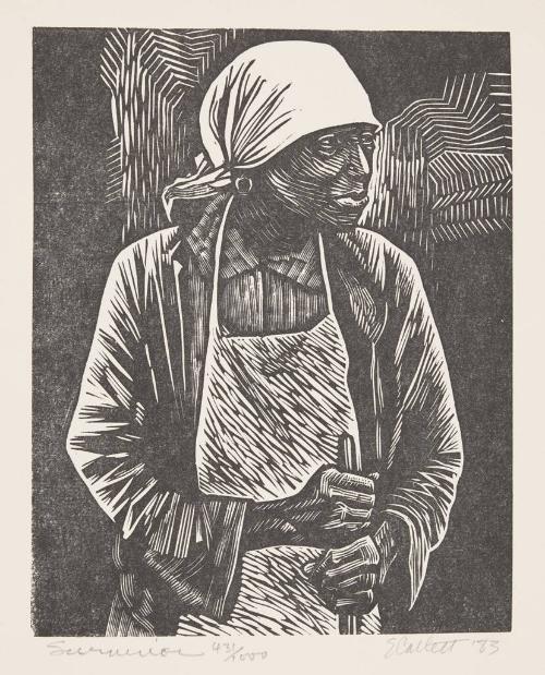 Linoleum cut was a new medium in the 1920s and one in which Catlett worked regularly from the beginning of her career as a printmaker in Mexico in the 1940s. Linoleum cut is similar to woodcut, but less laborious. The feel of cutting a linoleum block can be as smooth as pushing a knife through butter when using high quality tools and materials (written by Nancy Sojka for Passion on Paper: Masterly Prints from the KIA Collection, 2018)."