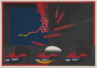 Exhibition History"Sugoi! 200 Years of Japanese Art," KIA, Galleries 2 & 5 (May 13, 2023 - September 24, 2023)Label TextIn the 1960s and ‘70s, Akira Kurosaki employed traditional Japanese woodblock print techniques to produce surreal abstractions that utilized Western painting styles. Dramatic shading defines three-dimensional, geometric forms in compositions that seem vaguely theatrical. Kurosaki uses chiaroscuro effects (contrasting light and shadow), along with a wide range of bold colors, which distances his work from traditional Japanese styles and subjects. Secret Codes 2 is representative of Kurosaki’s work with its bold, saturated colors and abstract imagery. [Label for “Sugoi! 200 Years of Japanese Art", 2023]
