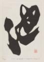 The main image in Maki’s prints is usually a true or modified kanji (a Japanese character derived from Chinese). The character in this print is a highly expressive, cursive form of the word "pond." It is both inked and embossed on a double thickness of paper. Maki carved the character into a wood block enhanced with dried, carved cement to maximize the depth of the relief. He began the Poem series in 1967. His consistent titling system identifies this work as the 80th print made in the year 1972." [Sosaku Hanga Exhibition, 2021]