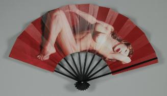 Made to conform to images of the 1950s pinup, viewers are challenged by the artist’s gaze and the media on which this image is produced. By presenting the image printed on a traditional Japanese fan, Morimura comments on Japan’s assimilation of western culture in the decades following World War II. Simultaneously, the artist calls attention to post-war western perceptions of Japan as an emasculated nation. [Label for "Unmasking Masculinity for the 21st Century", 2022]