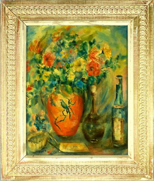 While Jones always maintained an admiration for the European greats, influences of the African and African American experience are prevalent in her art. In the 1940s, Jones spent time traveling to New York and befriending many icons from the Harlem Renaissance. In the early 1950s, she married Louis Vergniaud Pierre-Noël, a Haitian artist, and began traveling to Haiti annually and incorporating a brighter color palette and Haitian symbolism into her work. [Label for "Art, Music & Feminism in the 1950s”, 2023]