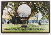 "EXPO Chicago 2023" Chicago, Navy Pier (April 11 - 14, 2023).Label TextIn Paris/Cape Town, Gray centers a large circular image of thick, billowing clouds of smoke, dotted by patches of black land over an ordinary park setting. Within this overlaid scene of an autumn day, passersby stroll through, unaware of the photographer's lens capturing their comings and goings. In spite of the couples or their idyllic surroundings, a large concrete plinth takes center stage. The artist strategically places the circularly-framed photo of a burning Cape Town countryside over the pedestal’s original occupant. This subversive act—replacing the unidentified monument, creates both a portal and another memorial to consider. The image transports viewers, offering another history, place, and time to commemorate. [From Todd Gray, 2021, KIA]