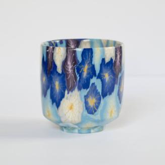 Mediumstoneware with neriage in white, blue, purple, gray, and white and yellow inlays