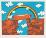 Label Text"What does Hot Dog Bridge, a seemingly whimsical work, try to convey to the viewer? Is it a gentle ribbing towards the art world, which, at times, can be all too serious? Is it a commentary on the American experience? After all, what’s more American than a hotdog? Or does the rainbow spanning a Southwest landscape symbolize hope and unity?